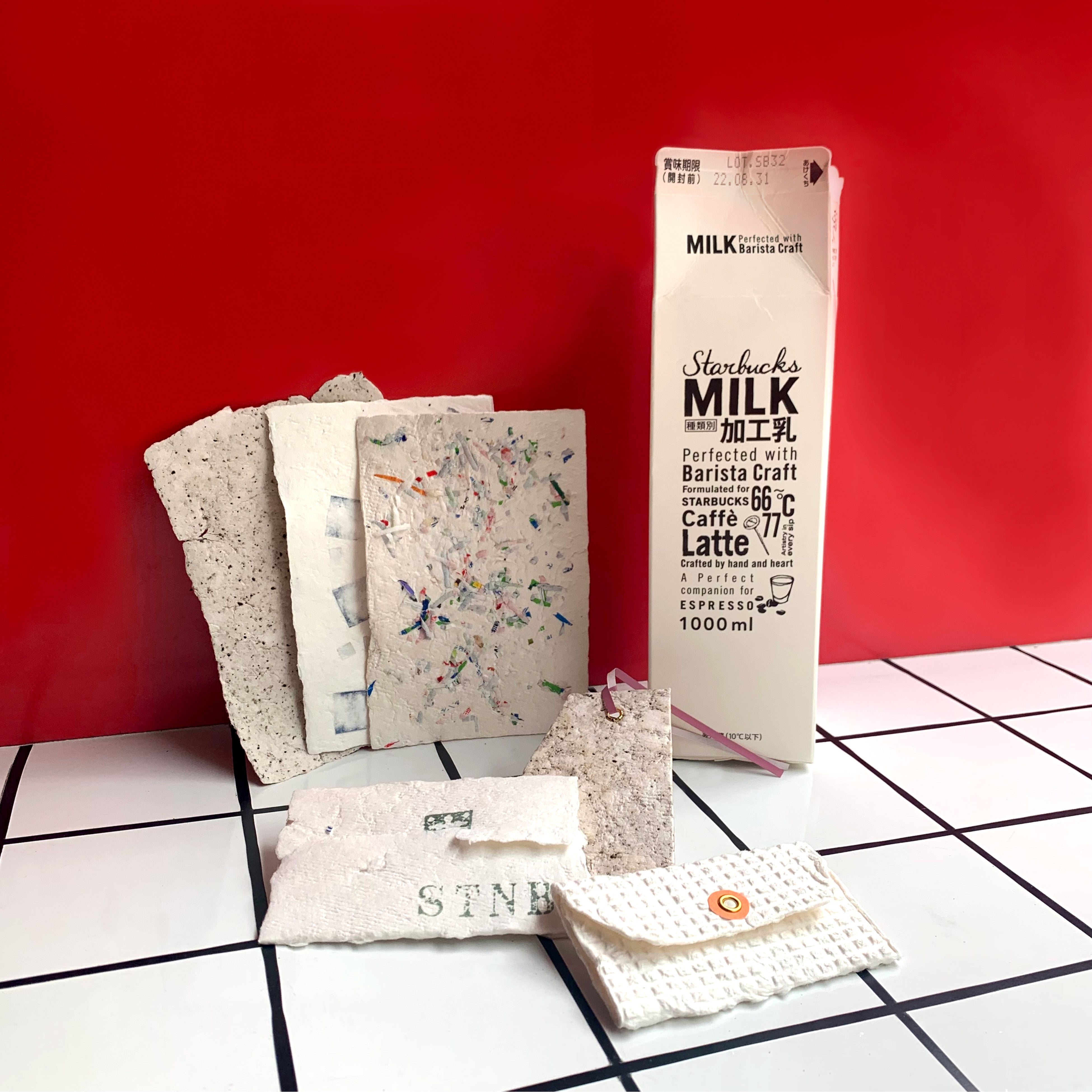 コクヨは、2019年より、スターバックス コーヒー ジャパン 株式会社の「限りある地球の資源を大切に使いたい」という想いに賛同し、「お客様とともにサステナブルな社会につながるアクションを起こしていきたい」というスターバックスとコクヨの想いを込め、スターバックス店舗で回収したミルクパックをノートの表紙に再活用した「スターバックス キャンパスリング ノート」等の商品を共同開発してきました。今回のワークショップでは、そのミルクパックを使って手すきの紙を作り、大切な人へ想いを伝えるギフトタグやミニ封筒などの小物に仕上げます。
