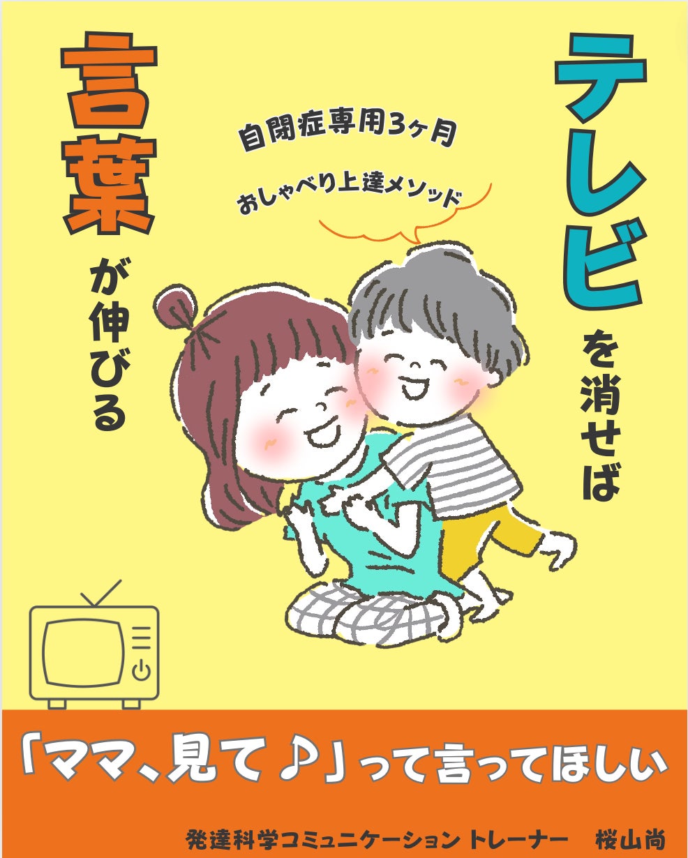 はじめまして 発達科学コミュニケーショントレーナー桜山尚です。言葉の苦手な自閉症児がママとの愛着をもっと深めて言葉が伸びるようサポートする専門家として活動しています。この度は、テレビを消せば言葉が伸びる 自閉症専用3ヶ月 おしゃべり上達メソッド電子書籍をリリースいたしました。