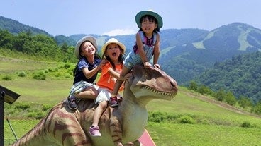 スキージャム勝山の敷地内では、子供向けのアクティビティが充実。恐竜をテーマにしたアスレチック広場「わんぱく恐竜ランド」や天然芝を滑ることができる「芝そり」、バラエティに富んだコースレイアウトの「パークゴルフ」など、多彩なアウトドアメニューをご用意しています。