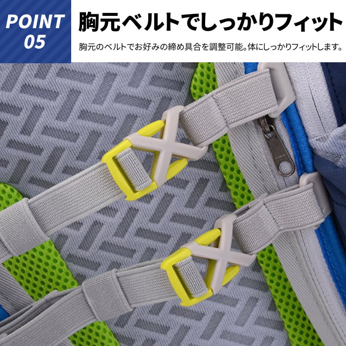 胸元のベルトは体格に合わせて調整が可能です。