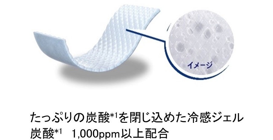 通常はどんどん消えてしまう炭酸*1をたっぷり閉じ込めたやわらかシートで、肌にピタッと密着。メントールなどの爽快成分を配合したシートタイプで、ジュワーッと心地よさが広がり、爽快感が長く続きます。