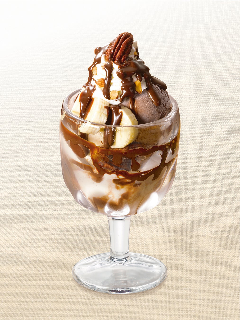 ベルギー産アイスクリームが引き立つ、高カカオのビターなチョコレートソース。香ばしいピーカンナッツの食感がアクセントです。