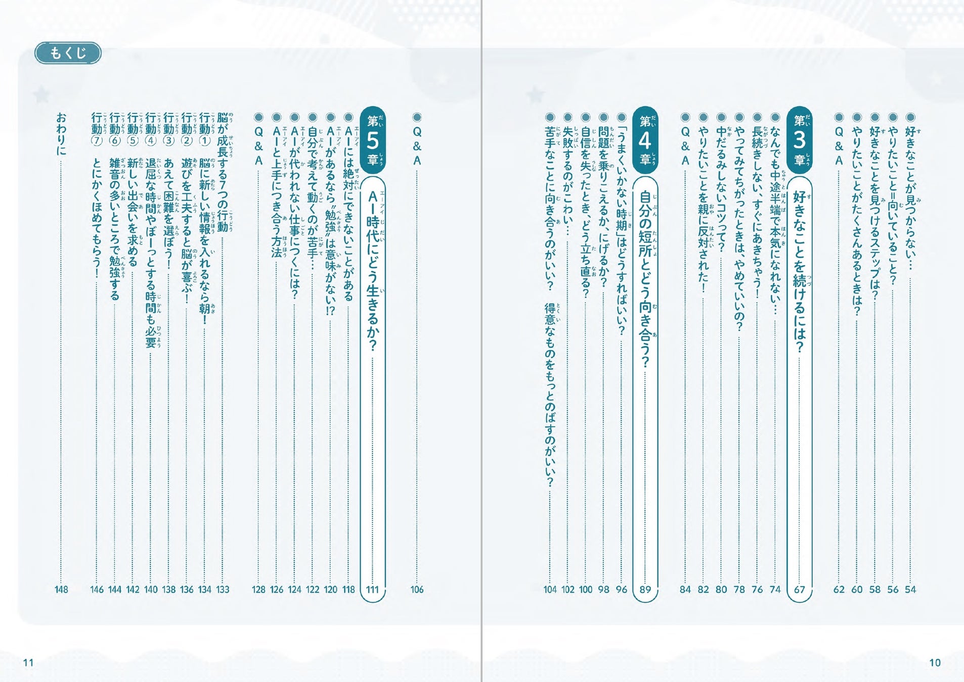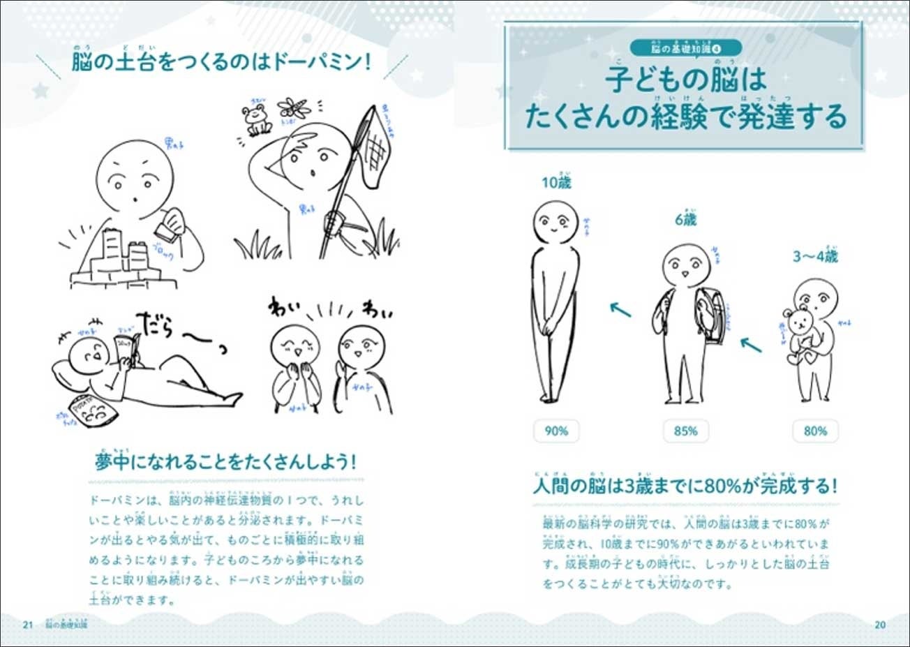この本では、やりたい!といった感情を生み出す脳の仕組みや、子どもの脳の成長をポイントに、いかに脳が喜ぶことをしていくか、困難なことに立ち向かうと脳にはどのような良い影響があるかなどを説明しながら、やりたいことを見つけていくためのアドバイスをします。経験論に基づく話ではないので、どんな子どもにも当てはまる、誰もがすぐに取り入れられる考え方や行動がたくさん解説されています。