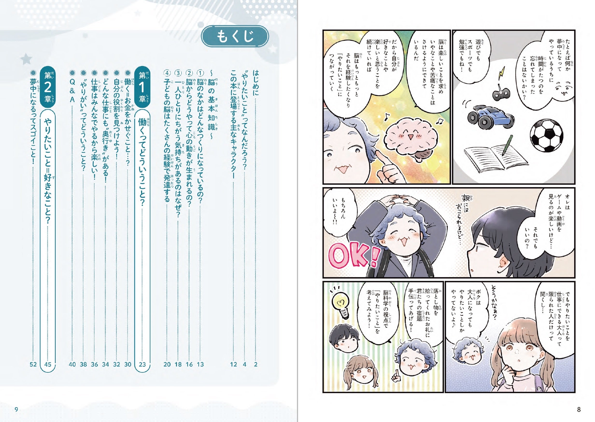 本書では、「すぐに答えを見つけなくてもいい!たくさん考えて試していく経験こそが宝!」というメッセージと共に、働くとはどういうことなのか、やりたいことと好きなことの違い、AI時代に必要なことなどをマンガを交えて解説していきます。