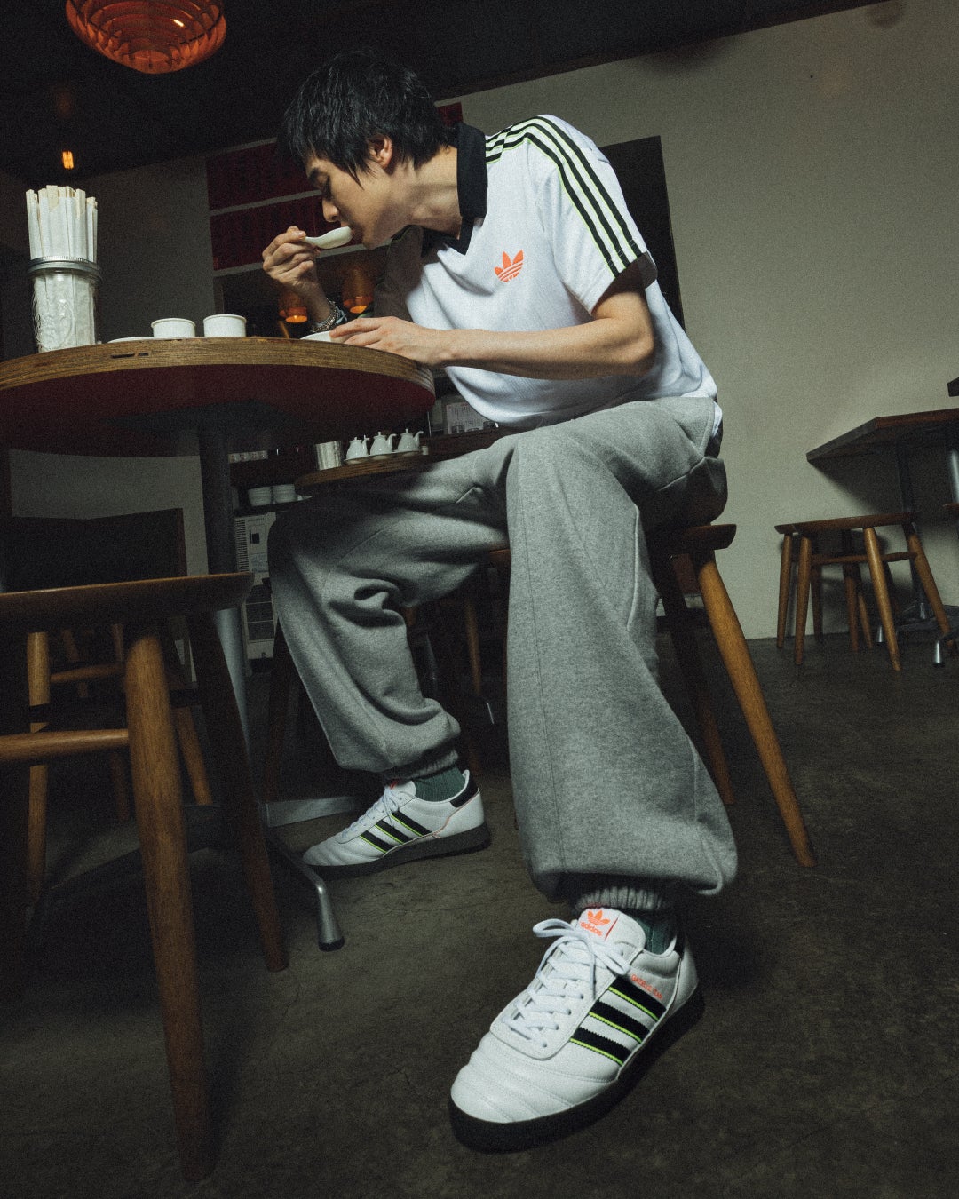 本コレクションには、昨今、俳優・モデルとして多くの注目を集め、ファッションシーンでも高い支持を集める栁俊太郎さんを起用。フットボールラバーでもある栁俊太郎さんが、今回の「FOOTBALL PACK」のアイテムを着こなすビジュアルとムービーを公開いたします。オフィス、町中華、スタジアム前のストリート、そしてスタジアム。どんな日常の中でも、自分らしくadidas Originalsを着こなす姿を通して、観る人が「自分の日常」と重ね合わせたくなるリアリティを描いています。