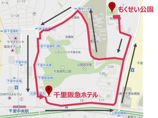 このエリアでは現在、豊中市がグリーンスローモビリティ(低速で走行する電気モビリティ)「モビとよ」にて巡回走行しており、官民協働による千里ニュータウン地区の魅力向上に資する取り組みを進めています。