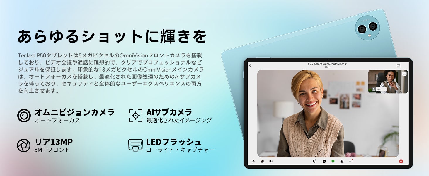 最先端のTDDIとインセルタッチスクリーン技術を採用し、より薄くて規党的に優れたデザインを実現し、優れたTeclast P50ディスプレイをお楽しみください。最大120Hzのタッチサンプリングレートにより、遅延を最小限に抑え、スムーズな高感度タッチ体験を提供し、あらゆる操作にシームレスに対応します。
