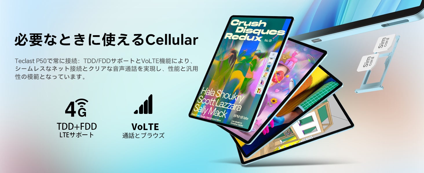 Teclast P50で常に接続:TDD/FDDサポートとVoLTE機能により、シームレスなネット接続とクリアな音声通話を実現し、性能と汎用性の模範となっています。高速ac Wi—Fi、433Mbpsでのスムーズなオンライン閲覧、様々なワイヤレスデバイスに素早く接続できる効率的なBT 5.0をお楽しみください。