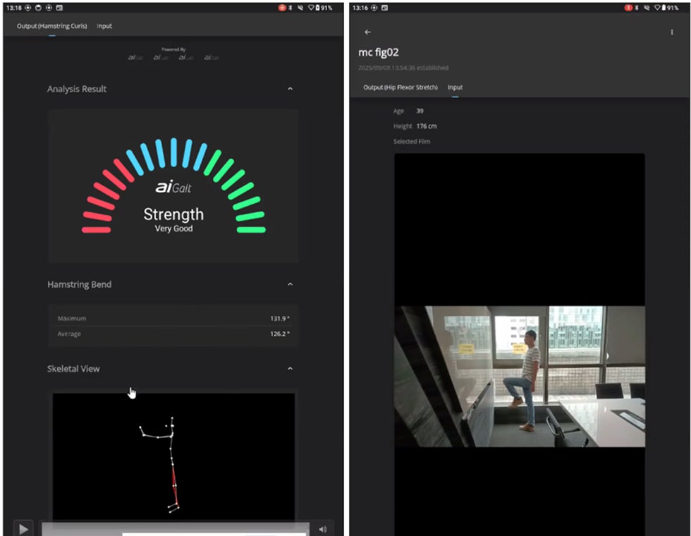 本連携において、富士通の「AI Technologies and Solutions」から提供する骨格認識AIを組み込みAcer Medicalが開発している、高齢者の歩行パターンをデジタル化するソリューション「aiGait(エーアイゲイト)」powered by Uvance(注5)(以下、「aiGait」)を活用した、FIGの体操プログラムをデジタル化するスマートフォン向けのアプリケーションの開発をAcer Medicalが進めています。本アプリケーションでは、FIGのASWGにおいて推奨されているエクササイズを行う利用者の動きをカメラで撮影することで、利用者のフォームを分析し、筋力や可動域といった体の状態を測定し、エクササイズが正しく行われているかを手軽に評価できるとともに、その評価結果に基づいて各利用者に適した運動種目を提案します。