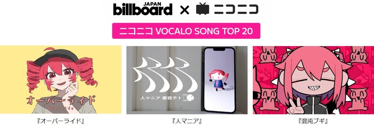 「Billboard JAPAN」では、2022年12月より、ニコニコ動画に投稿されているVOCALOID曲の人気を測るチャート「ニコニコ VOCALOID SONGS TOP 20」(https://www.billboard-japan.com/charts/detail?a=niconico)を設けて、ランキング※を毎週公開しています。