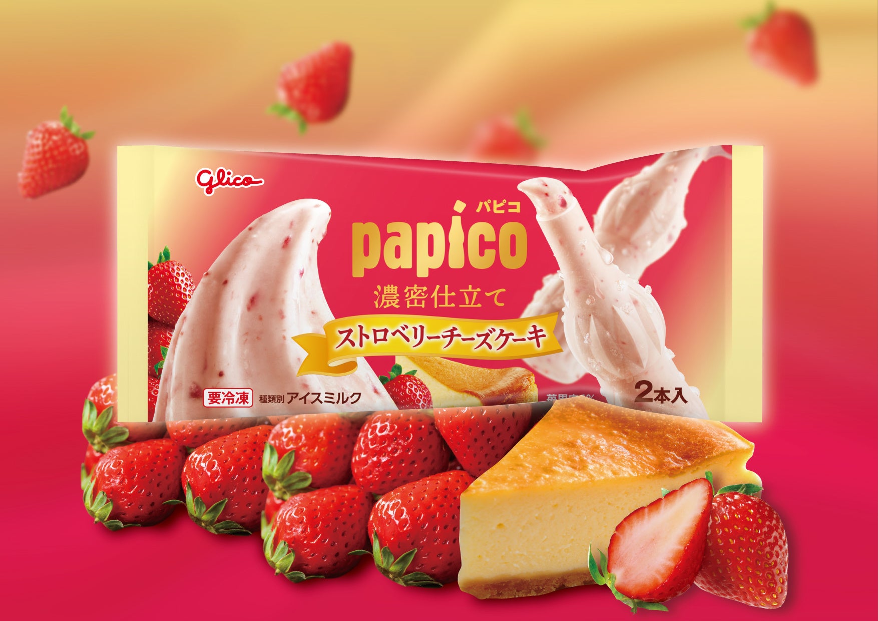 アイスの濃厚な味わいと苺果肉の食感をあわせて濃密に仕上げた、秋冬の「パピコ」が新登場!「パピコ 濃密仕立て<ストロベリーチーズケーキ>」
