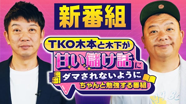 最近投資トラブルに巻き込まれたTKOの木本さんと、相方の木下さんが、改めて投資に向き合い学び直す番組。近年価格が高騰している「高級腕時計投資」や「キャンプ場投資」「民泊投資」など、身の回りにあるさまざまな投資手法の実態に迫ります。
