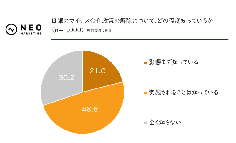 日本銀行は、2024年3月19日に開かれた金融政策決定会合において、2016年以来続けてきたマイナス金利政策の解除を決定しましたが、これについてどの程度知っているかお聞きしました。