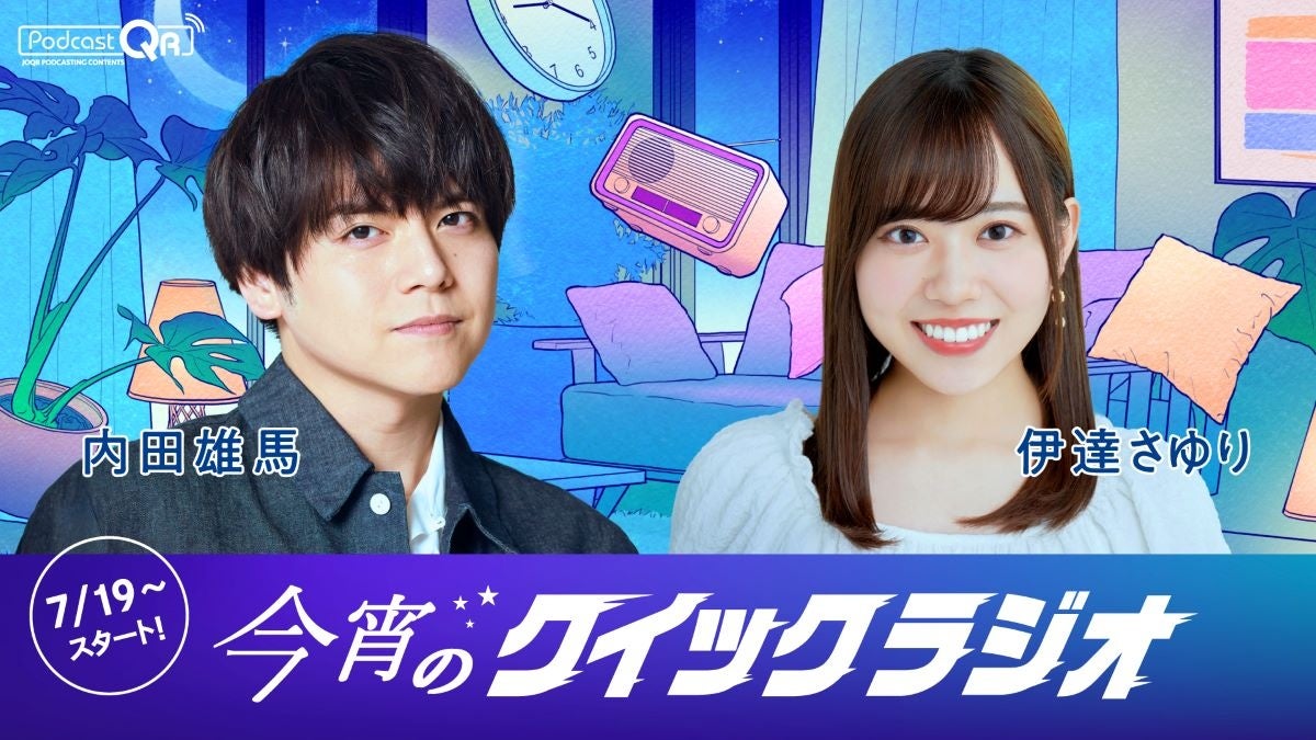 今回の番組では、伊達さゆり(声優)、内田雄馬(声優)の2名がパーソナリティとして登場。「今宵のクイックラジオ」にバージョンアップして91.9秒とあまりにクイックな番組でありながら、ゆったりと落ち着けるようなエピソードトークをお届けします。第1回目の配信となる7月19日(金)は、伊達さゆりがパーソナリティを担当します。