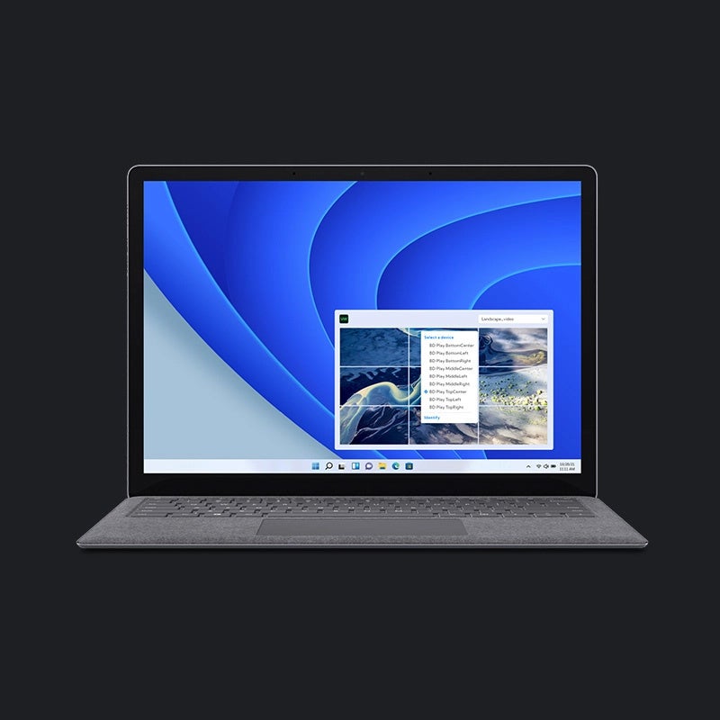 シンプルかつ強力な VideoWall を使用すると複雑なビデオウォールを簡単に構築できます。VideoWall は、NDI® および NDI® HX のビデオファイルを複数のスクリーンに表示します。2×2 または 3×3 の画面レイアウトを選択し、各画面に PLAY または SDM を割り当て、NDI® ストリームを選択し構築できます。