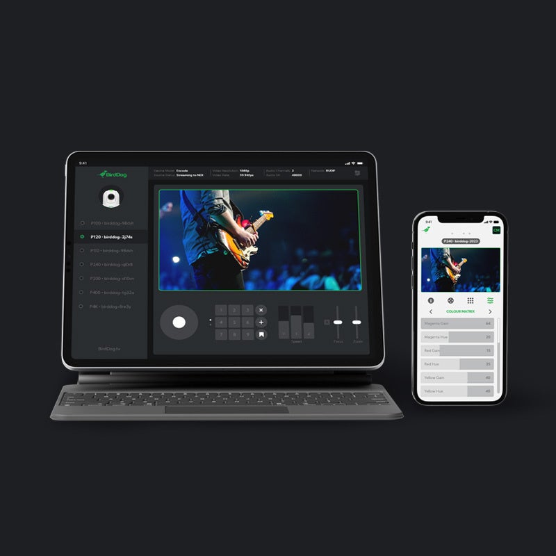 NDI PTZ Control には、BirdDog PTZ カメラユーザー向けの強力な機能 Cam Control も組み込まれており、BirdDog 社の PTZ カメラをシェーディングするためのカラーマトリクスツールにアクセスできます。これら機能が iPad や iPhoneを使って操作できます。