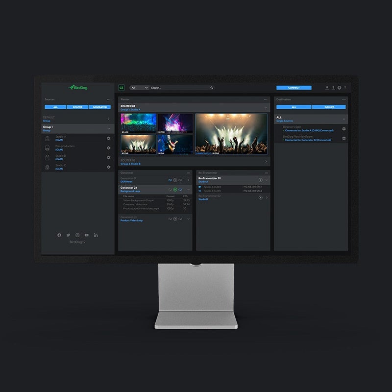 NDI TV Monitor を使用すると、無料で BirdDog のソースを直接受信して表示できます。他社製品の NDI ソースについては、アプリケーション内オプションをご購入いただくとご利用いただけます。