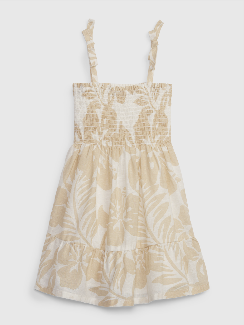 【Toddler Girl】コットンリネン スモッキングギャザー フローラルワンピース 80~110cm ¥4,990