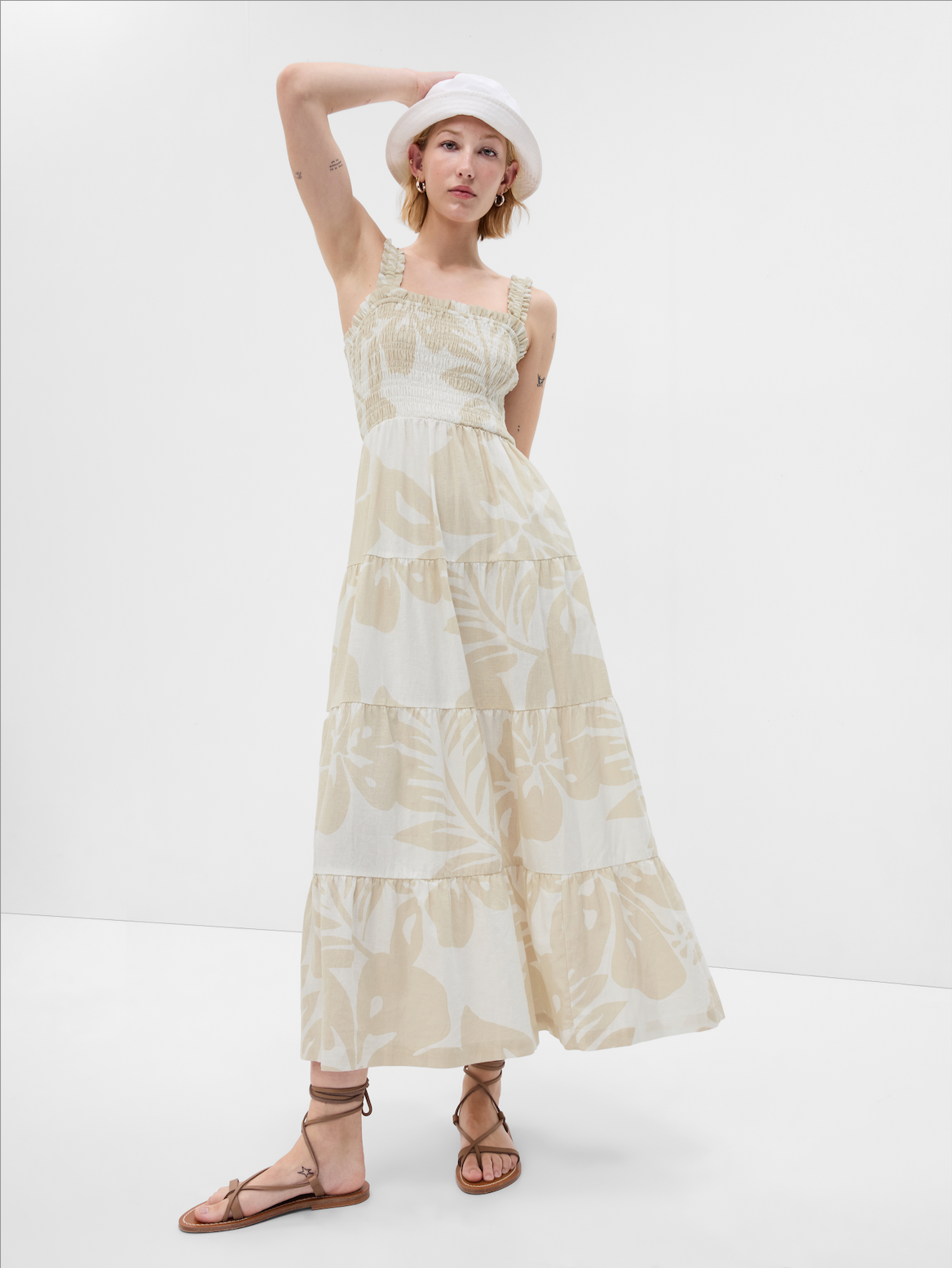 【Women】リネン混 ティアード マキシワンピース ¥12,990