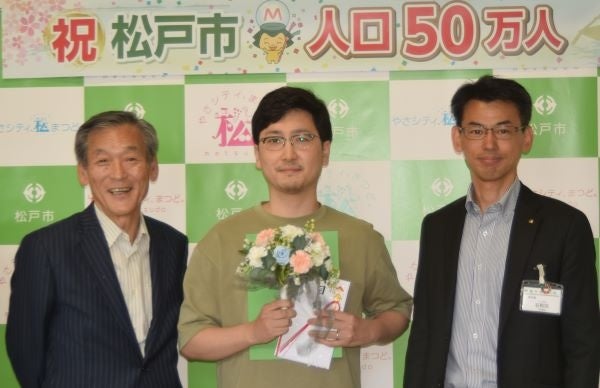 「自分が4歳から大学卒業まで育った松戸市で、自分の子供が50万人目になったことを誇らしく思います。1人目の子が産まれた時から、医療制度などが手厚く、松戸市には感謝しております。」
