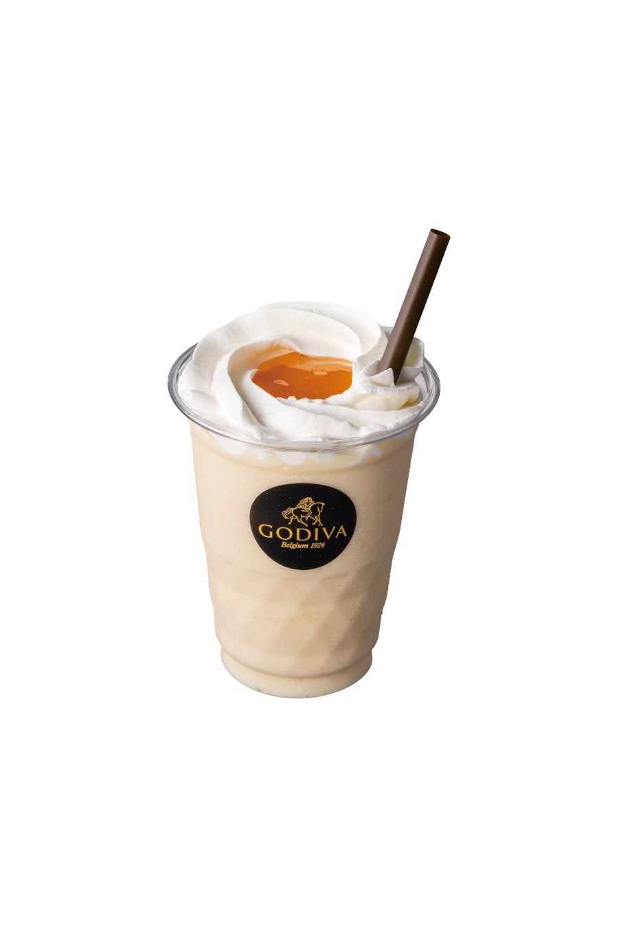 「ショコリキサー 黄金の梅Ⓡ」では、ゴディバのホワイトチョコレートに「黄金の梅®」ジャムをあしらい、トッピングにも「黄金の梅®」ジャムを使用しました。「黄金の梅®」は、福井県で生まれた品種「新平太夫」を、樹上で完熟させ、香りが最高潮に達した短い時期に自然落下した良品のみ、という希少な梅です。完熟した梅から感じる熟成された甘味と優しい酸味、ホワイトチョコレートとホイップクリームのクリーミーな味わいとのマッチングをお楽しみいただけます。