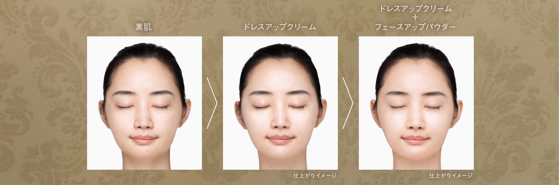 目指す肌仕上がりはベールをまとったような、きめ細かく透明感あふれる感動仕上がり。これまで「フェースアップパウダー」で、理想の肌仕上がりを追求してきましたが、2023年5月、「ドレスアップクリーム」がラインアップに加わることで、さらに美しい“ミラコレ肌”へ導きます。