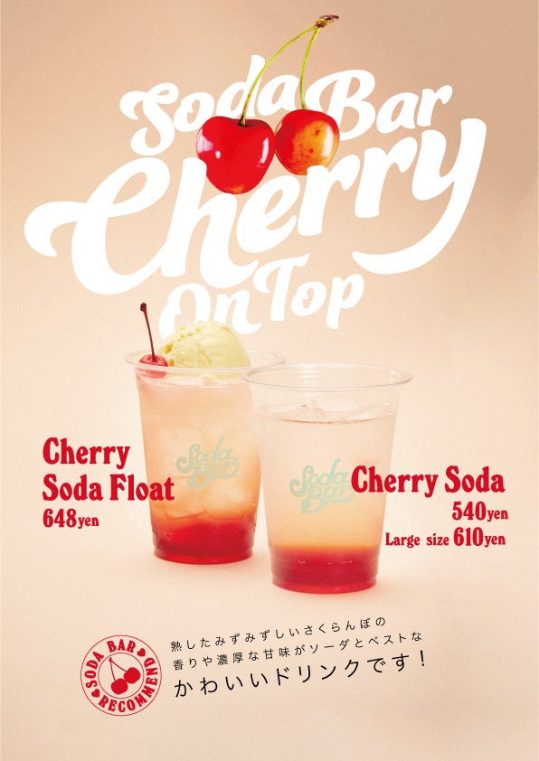 アパレルブランドXLARGE、X-girl、MILKFED.、SILASなどを運営する株式会社ビーズインターナショナル(本社:東京都目黒区、代表取締役社長:西方雄作)が、飲食事業として展開するソーダ専門店『SODA BAR』から期間限定の新作フルーツソーダ ”チェリーシリーズ” が新発売されます。