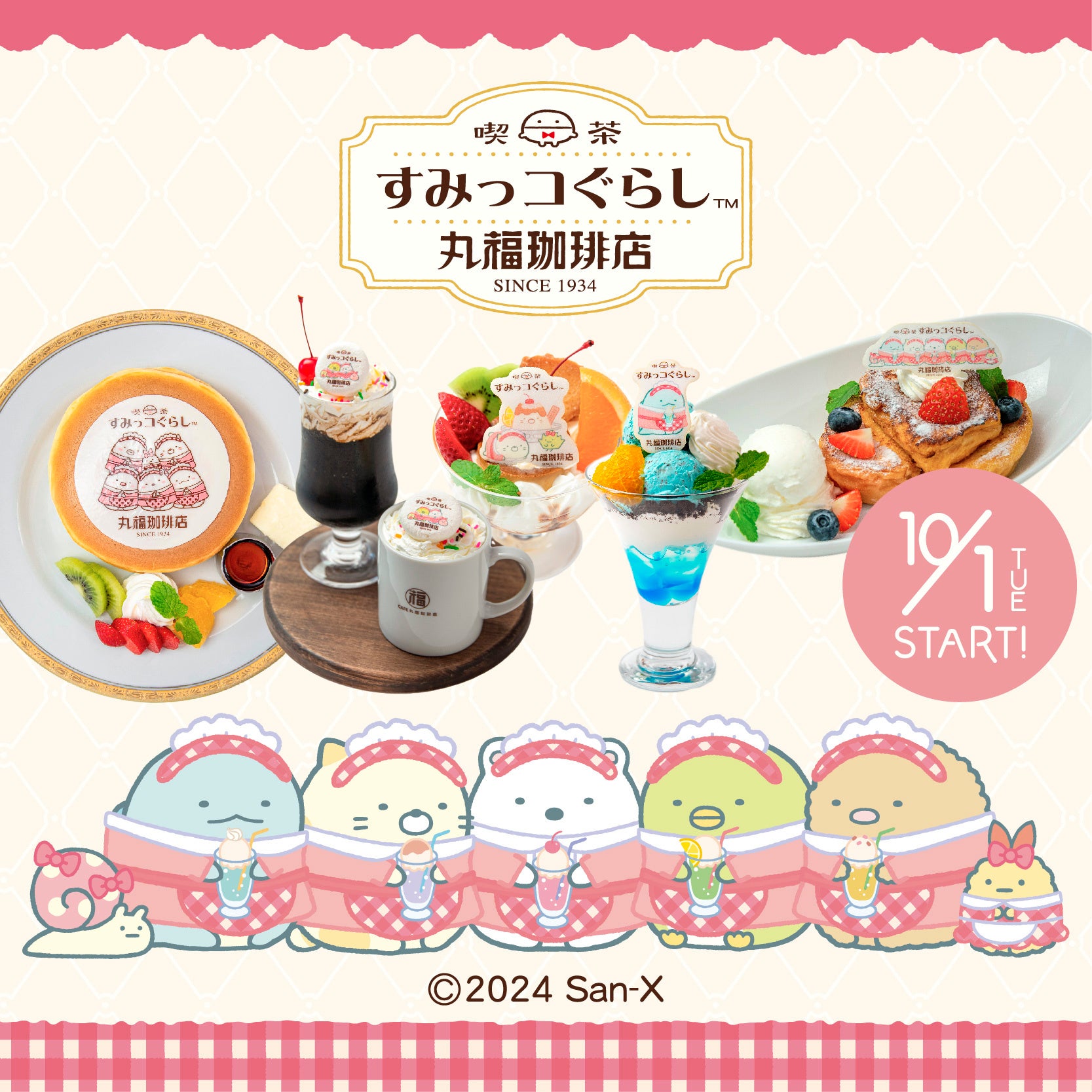 サンエックス株式会社(代表取締役社長:千田洋史 本社:東京都千代田区)は、株式会社丸福商店(代表取締役社⻑:伊吹信⼀郎 本社:⼤阪府⼤阪市)が展開する丸福珈琲店との「丸福珈琲店×すみっコぐらし」コラボフェア第3弾を2024年10⽉1⽇(火)〜11⽉30⽇(土)の期間、全国18店舗にて開催することをお知らせします。