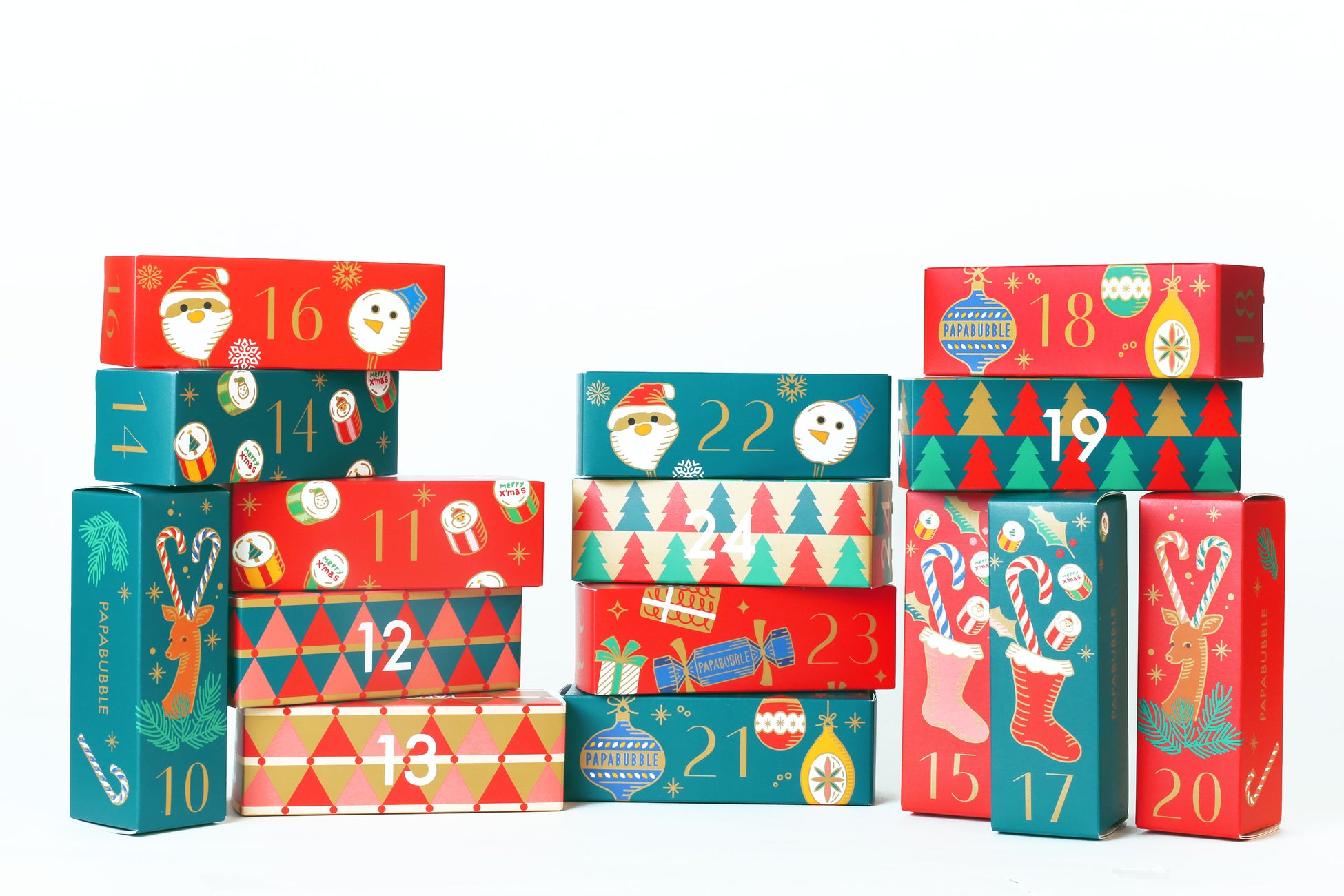 カラフルな小箱にはキャンディやグミ、焼き菓子などを詰め合わせ、1日ごとに開けて味わえるワクワクの仕掛けをプラス。食べ終わった後も箱を積み重ねて飾れる仕様で、見た目にも楽しさを広げました。