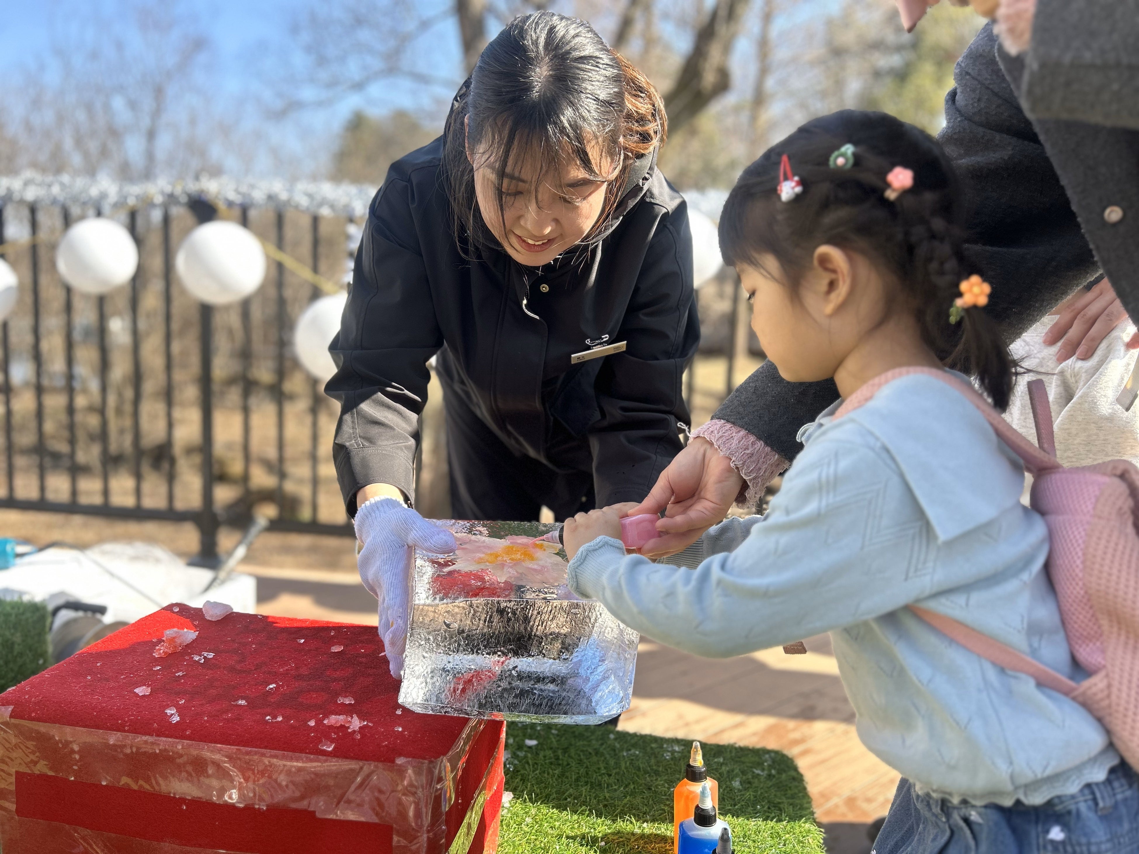 また、こどもたちによる花氷の絵付け体験も実施され、色とりどりに装飾された氷が並ぶ光景が、会場にやわらかな彩りを添えました。自ら手を動かして氷に触れる体験は、ライブパフォーマンスとは異なる角度から氷の魅力を体感できる機会となりました。