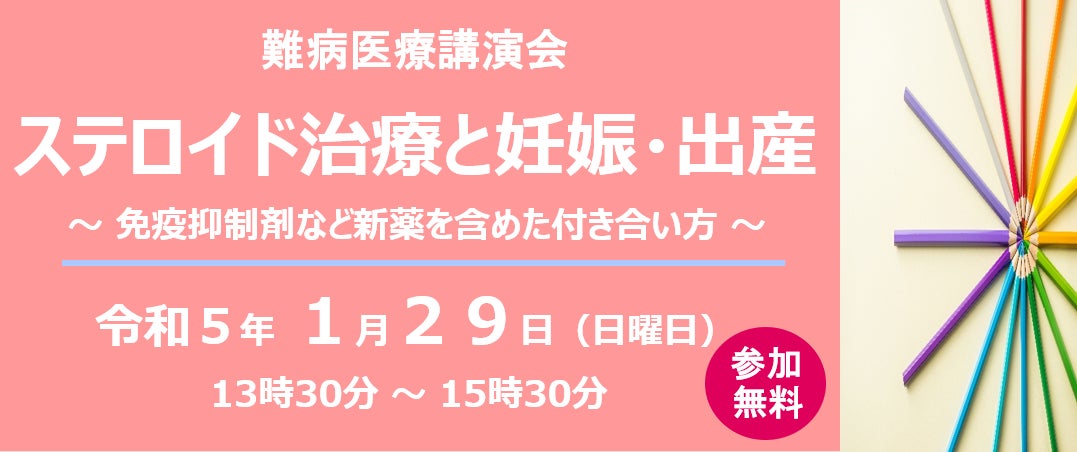 順天堂医院/東京都難病相談・支援センターは、2023年1月29日(日)13:30より、「ステロイド治療と妊娠・出産」をテーマとした難病医療講演会をオンラインで開催します。