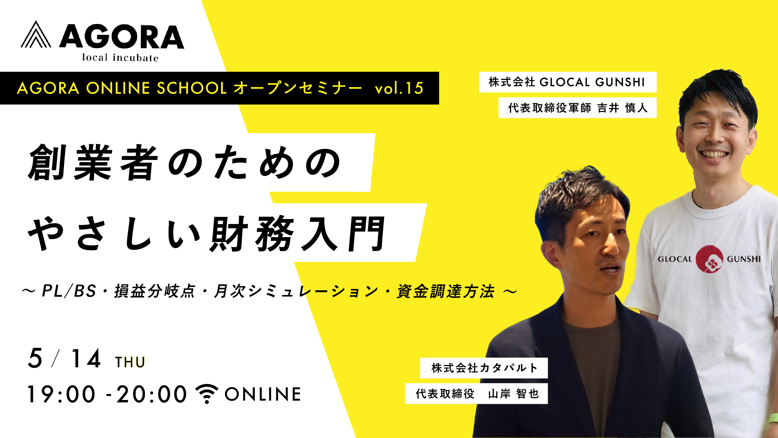 株式会社AGORAでは、2026年5月14日(木)に「創業初期の財務」をテーマにした創業WEBセミナーを開催します。