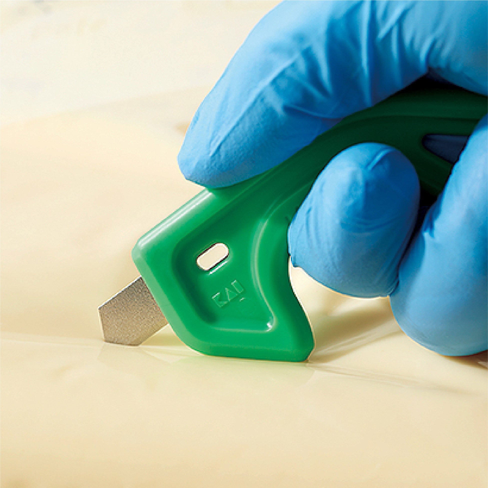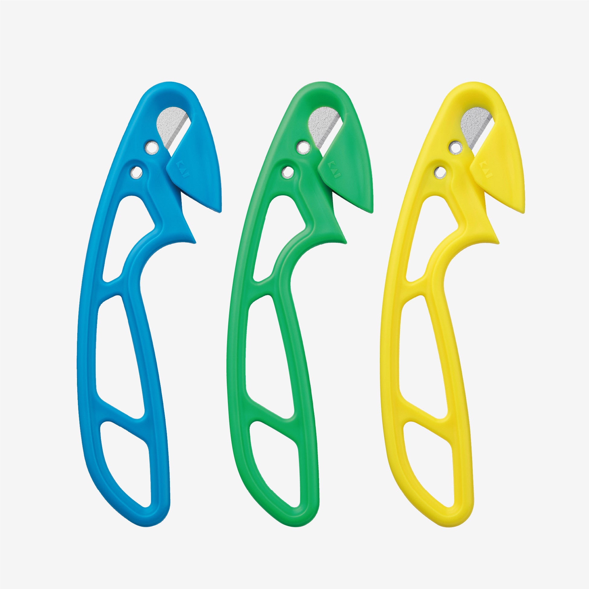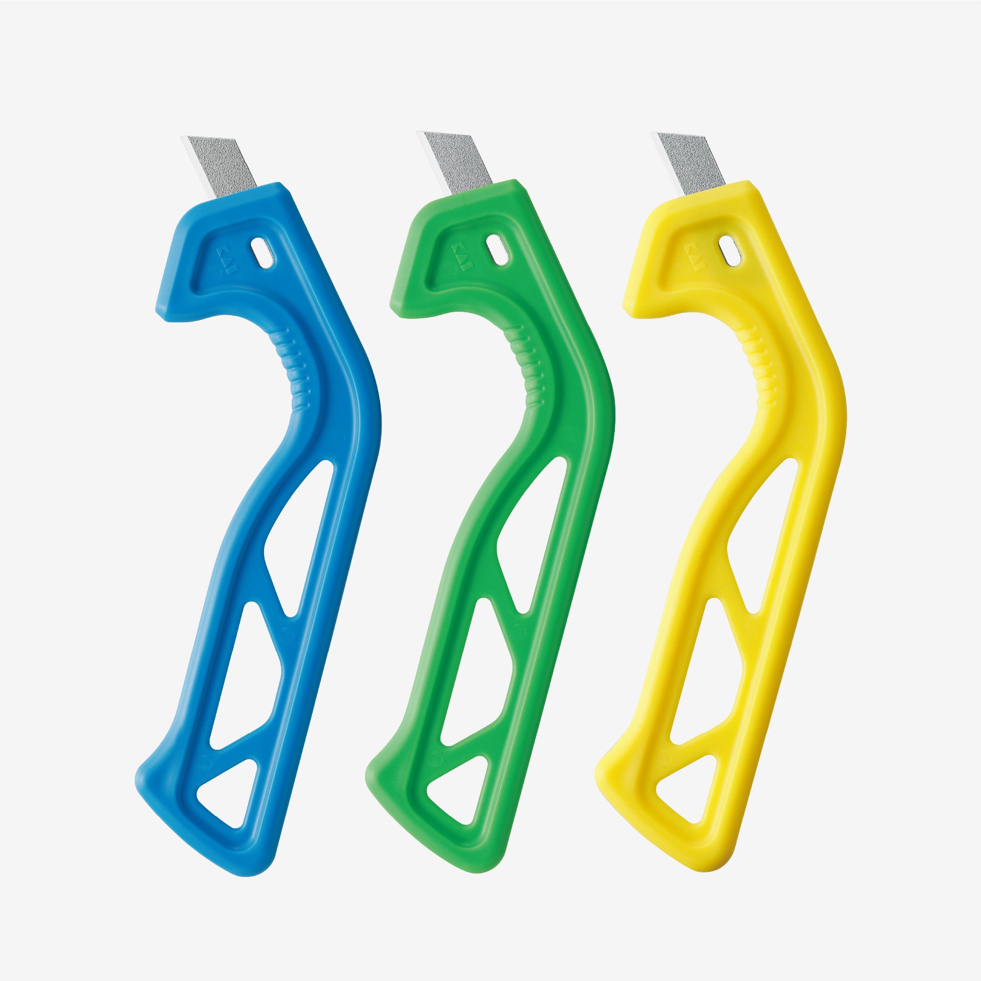 食品工場にとって、異物混入は死活問題である。包装材の開封における二度切りなどによる包装材の混入防止だけでなく、刃を挿入一体型にすることで混入を防止したり、セーフティ構造で怪我を防ぐなど、現場の要請をとてもシンプルな設計で解決している。まさに、デザインの勝利ともいうべき製品である。