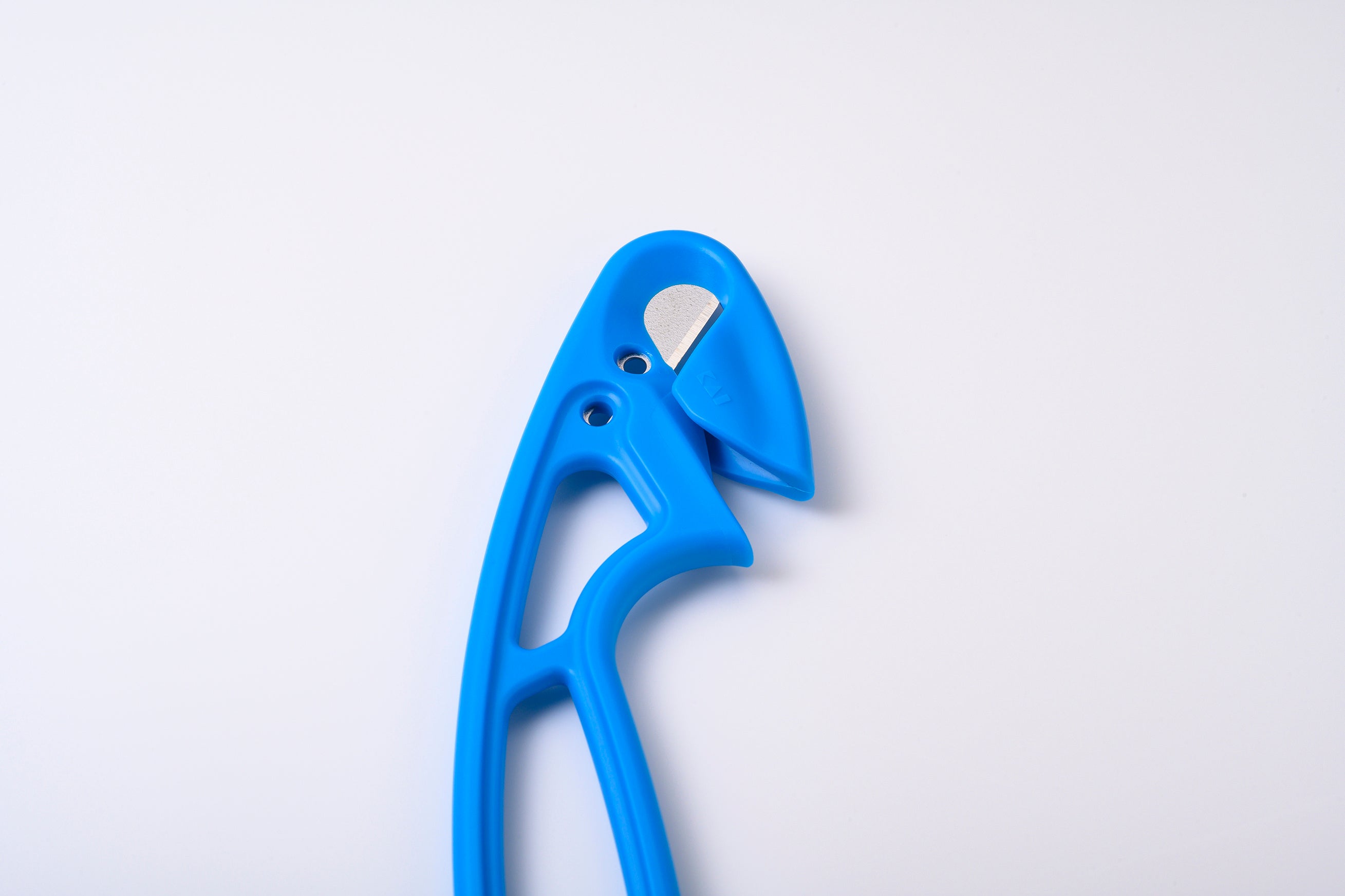 2020年に受賞した異物混入対策スリットナイフに対し、本製品は袋を立てた状態で開封する必要のある容器に向けた提案である。握ってみるとしっくりと安定して把持でき、刃の侵入角や構造なども良く練られている。仔細に見ると最小限の資材で合理的に設計されている事が分かり、丁寧な検討の積み重ねを感じる。
