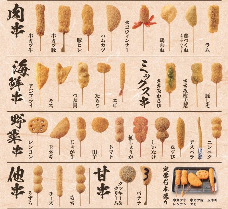 ・対象の串カツ以外の串カツ、および一品メニューは通常料金となります。