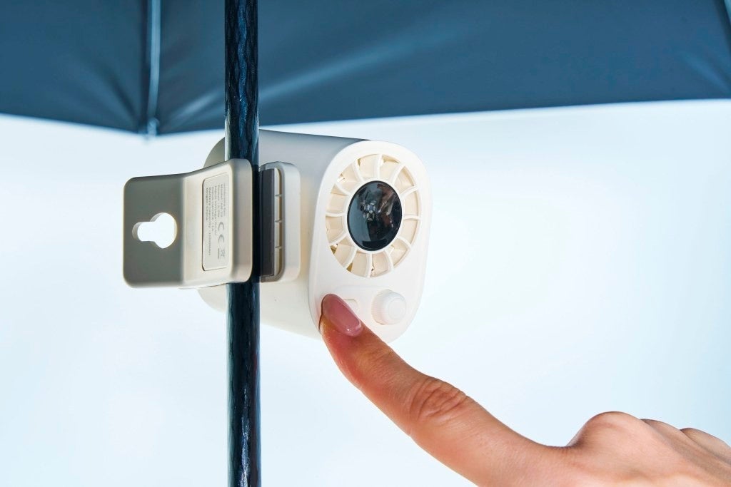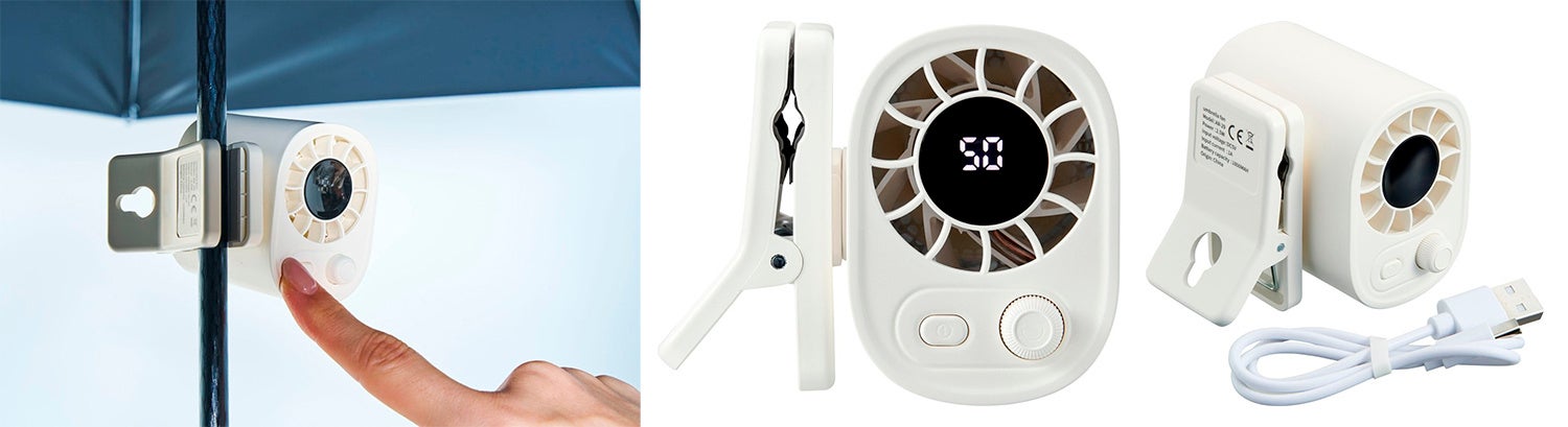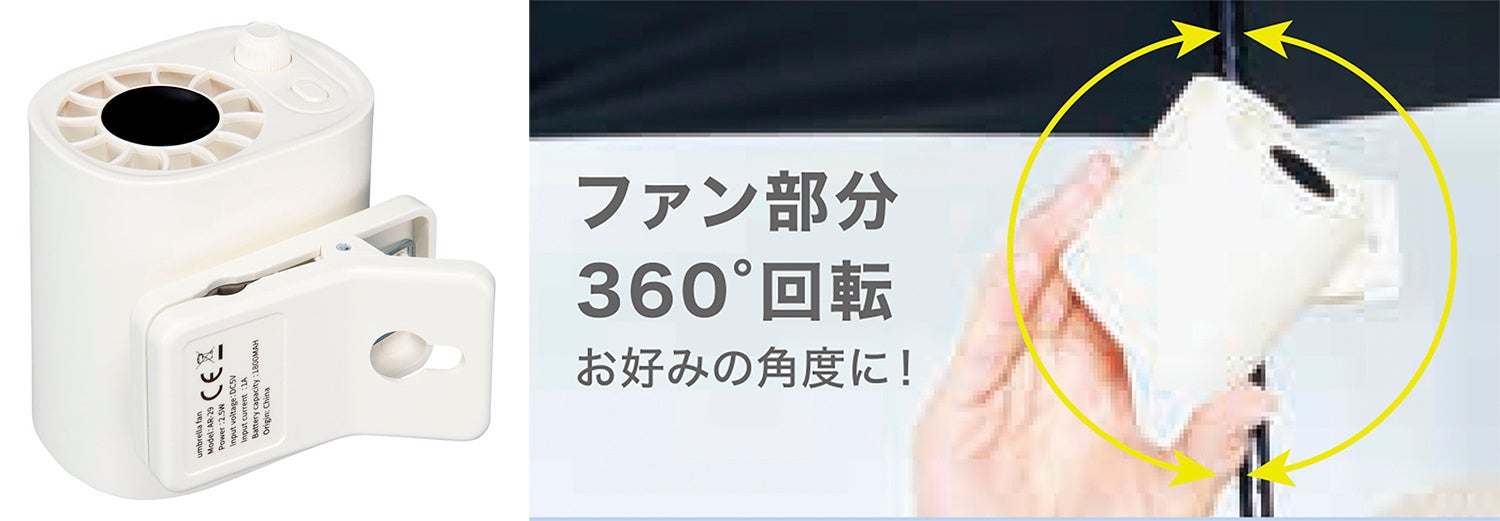 傘の中が、快適。涼しい。クリップで取り付けられるコンパクトファン「超風力クリップファン」を3月2日より発売
