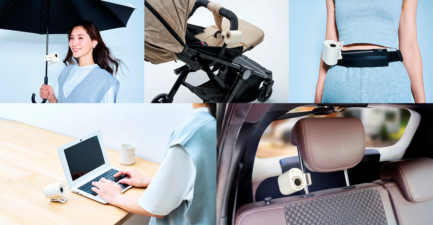 傘の中、ベビーカー、ウォ―キング、テーブル、車の座席など、この夏の暑さ対策をスマートにサポートします。