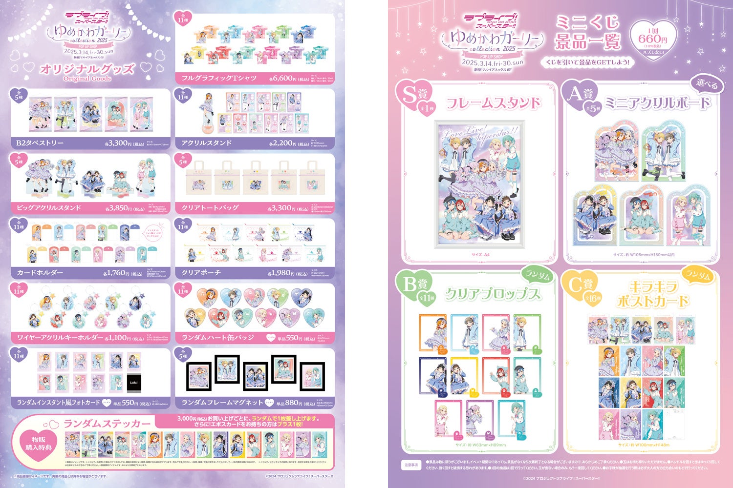 バンダイナムコフィルムワークス公式通販サイトA-on STORE(https://a-onstore.jp/shop/llsp_yumekawa2025)にて、3月24日(月)18時から4月7日(月)23時59分まで、本イベント商品の通販予約受付を実施致します。また、ミニくじについては、同スケジュールでゲーマーズのオンラインくじ(ゲマくじ)にてWEB販売を行います。