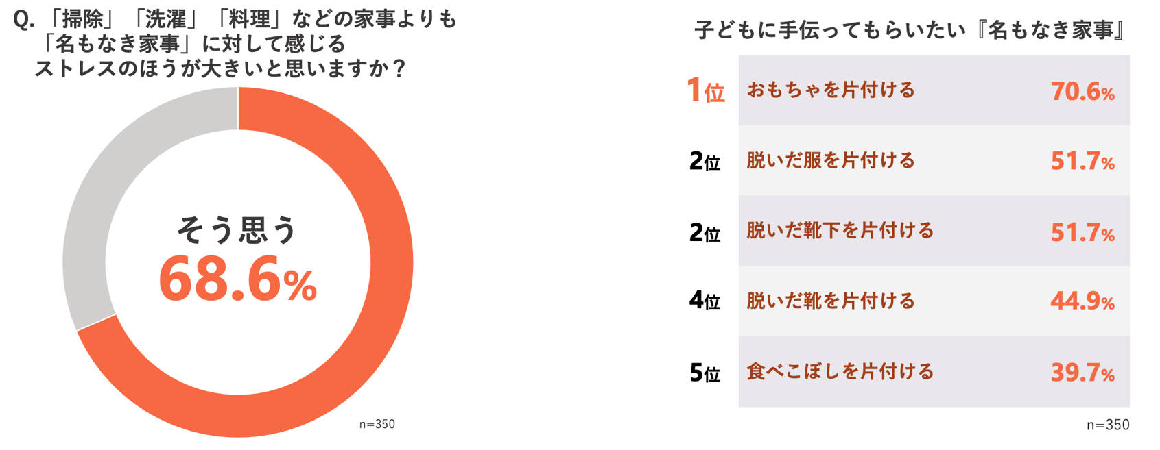 - 68.6%が通常の家事よりも『名もなき家事』に対してストレスを感じている