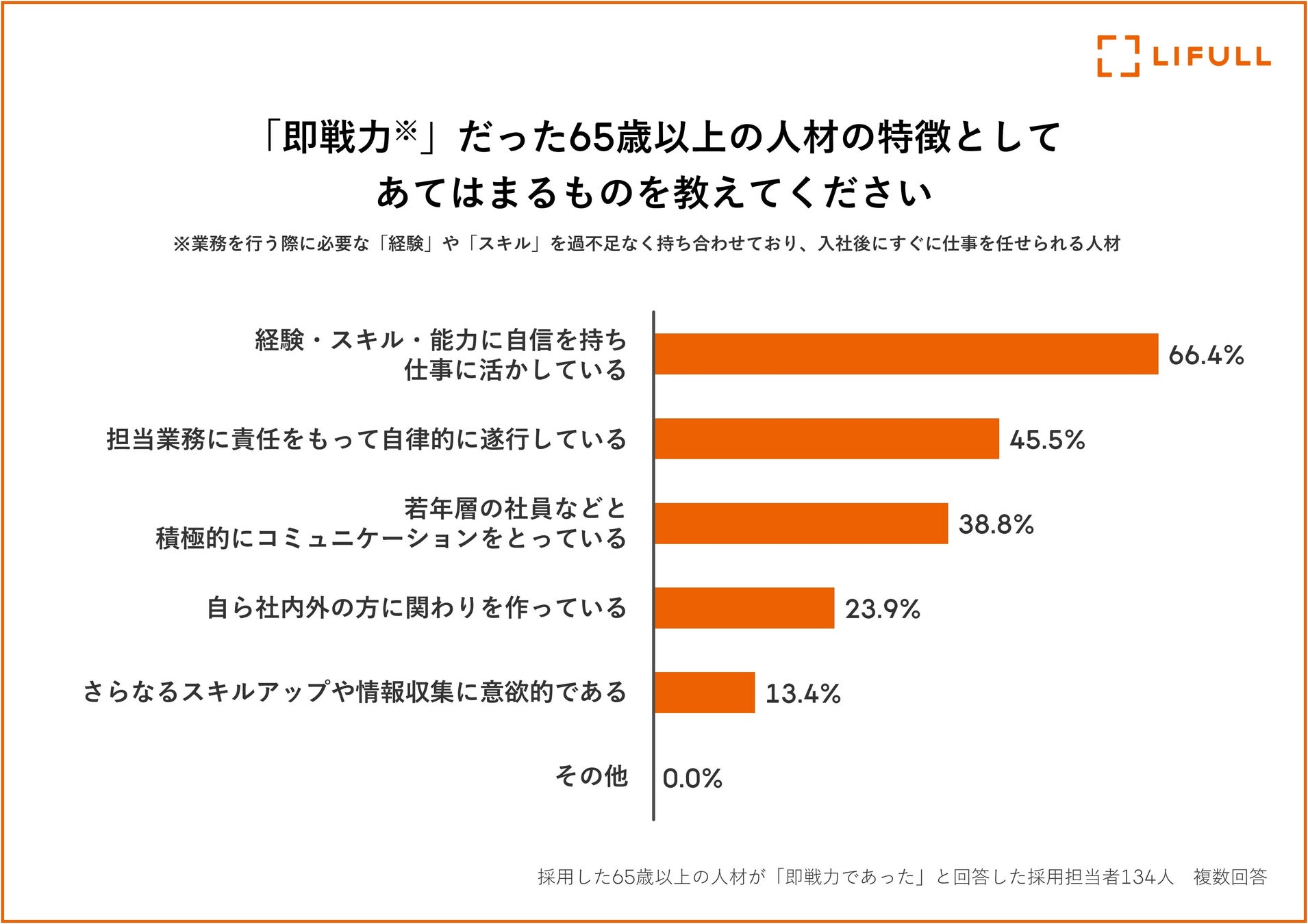 即戦力だった65歳以上の人材の特徴は「経験・スキル・能力に自信を持ち、仕事に生かしている」が6割以上(66.4%)で最多