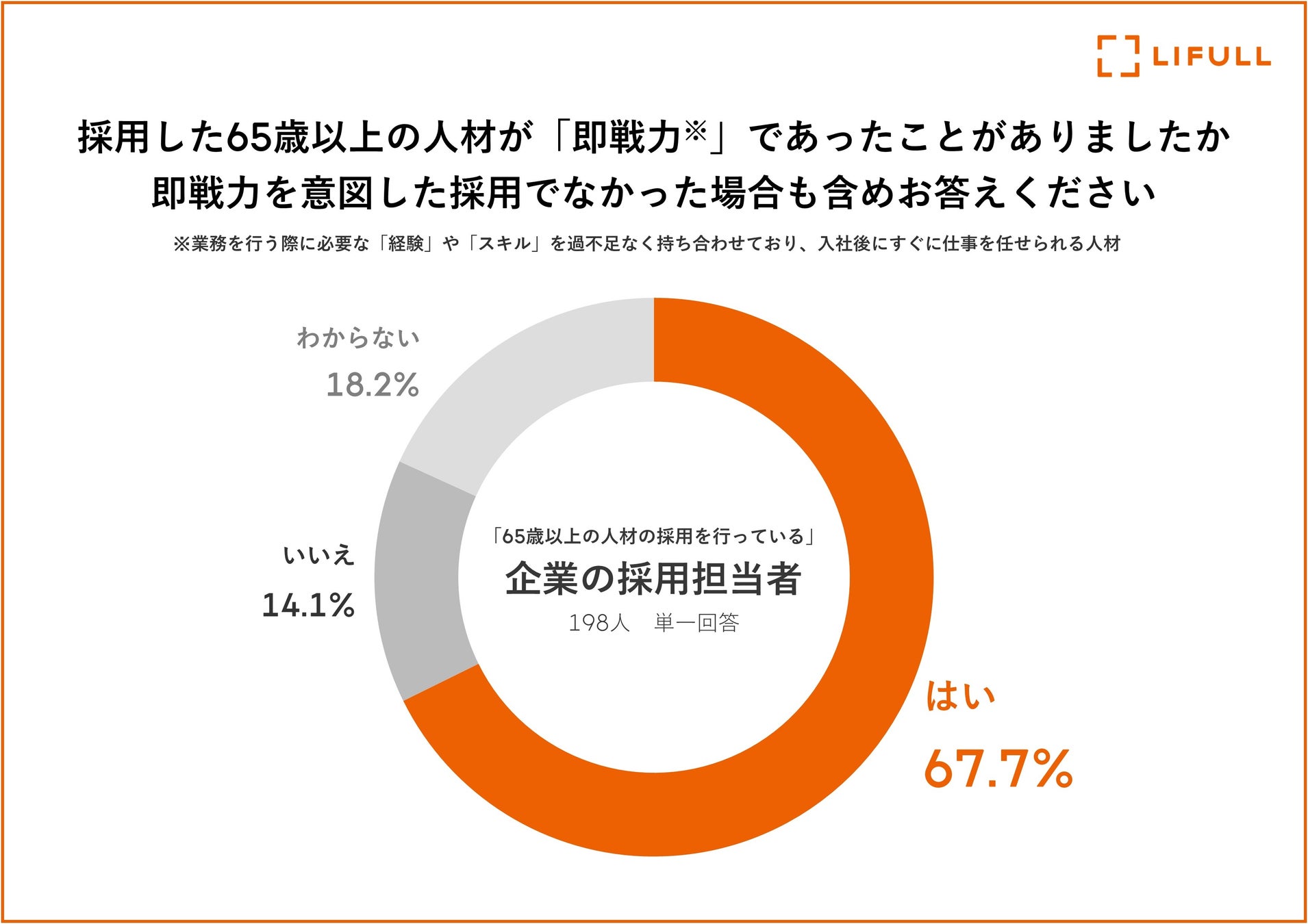「採用した65歳以上の人材が即戦力であったことがある」と約7割(67.7%)が回答