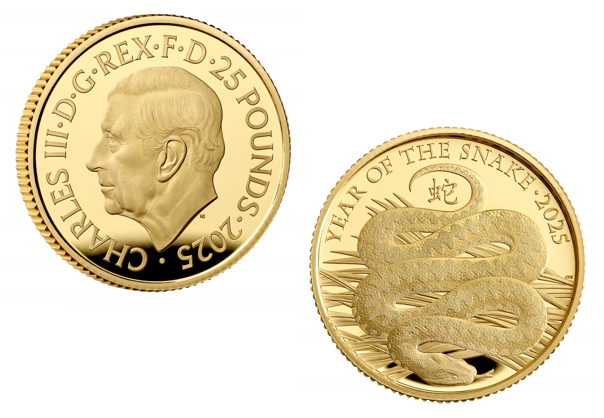 表にはチャールズ3世の肖像が描かれ、裏には今年の干支「巳」がデザインされた世界で388枚限定販売の金貨です。