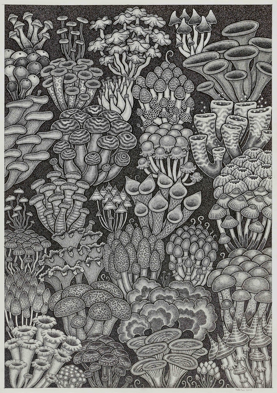 Maima Tani(マイマ・タニ) は、ヘルシンキを拠点に活動する多才で想像力あふれるアーティスト。自然や海洋生物からインスピレーションを得る。細い顔料ペンを用いた精緻なドローイングの制作、大規模な衣装やインスタレーションをかぎ針編みで制作。
