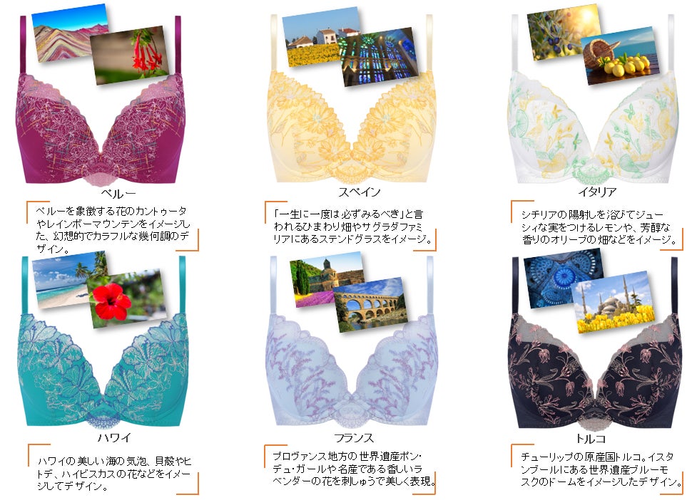 ランジェリーで世界の美しい絶景を旅しよう!ハッピームードの6柄6色コレクション AMOSTYLE< Beautiful View>が夏に向けて登場