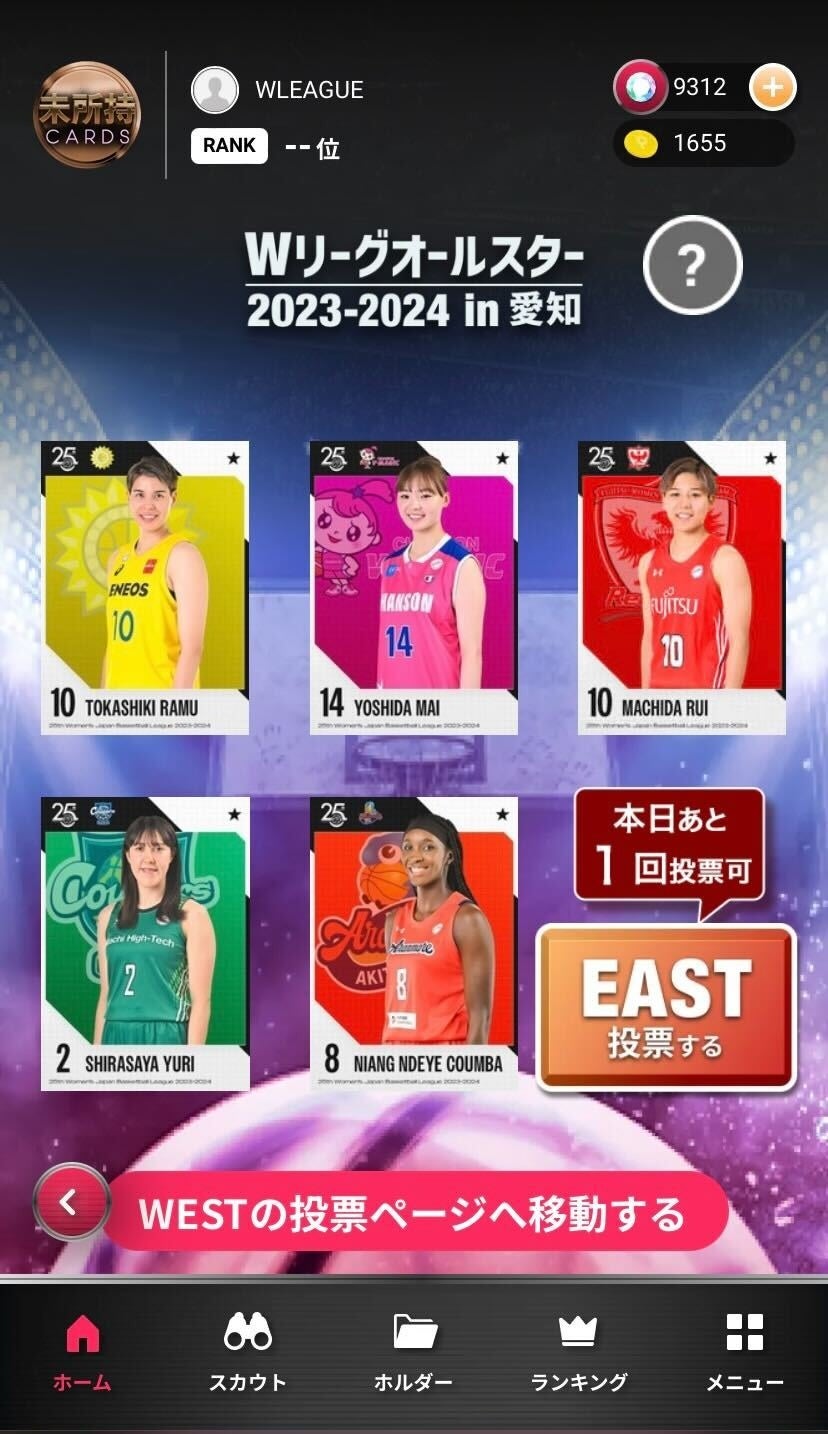 ■選手の所属チームを東西(「EAST」「WEST」)に分け、Wコレ内投票ページを使用しファン投票を実施。