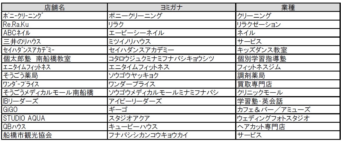 ららテラスTOKYO-BAY出店店舗一覧 (今般発表分の32店舗)
