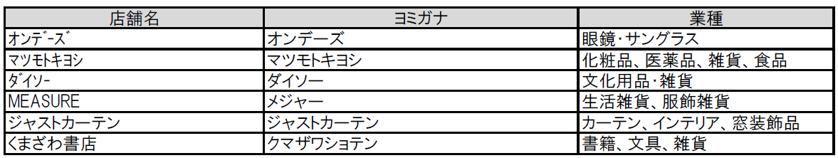 スーパーマーケットなど生活利便性の向上に資する全36店舗中、一部店舗を先行発表。