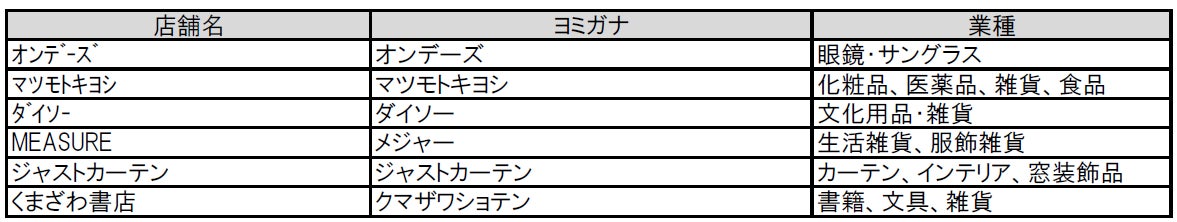 - スーパーマーケットなど生活利便性の向上に資する全36店舗中、一部店舗を先行発表。