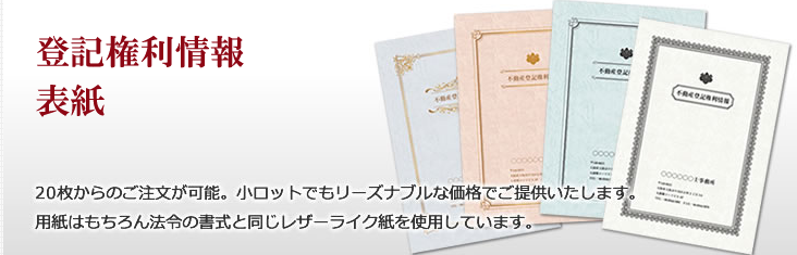 登記識別情報表紙(不動産権利証)・相続関係書類・不動産登記権利情報・登記完了証から名刺・透けない封筒印刷致します