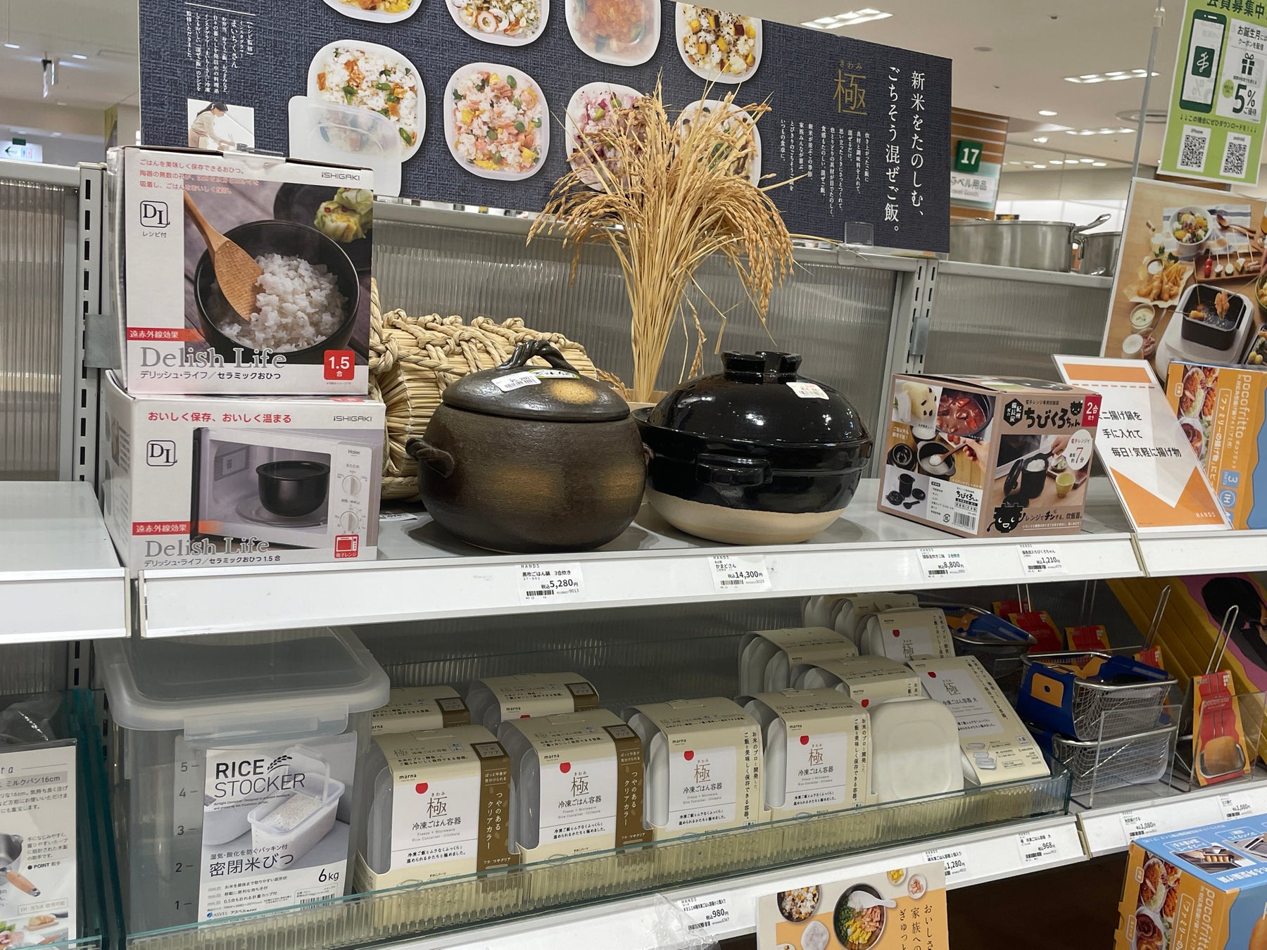 キッチンコーナーでは新米の季節にぴったりなお米にまつわるアイテムの特集を展開しています。